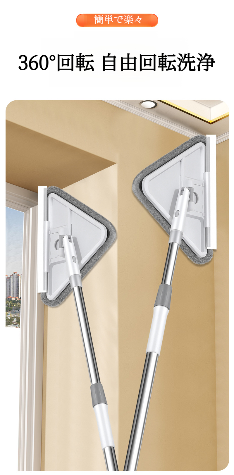 家庭用高層折りたたみ多機能三角モップ 伸縮調節可能なクリーン天井 窓拭きに最適